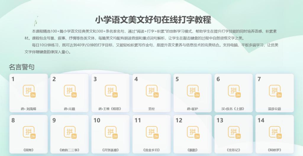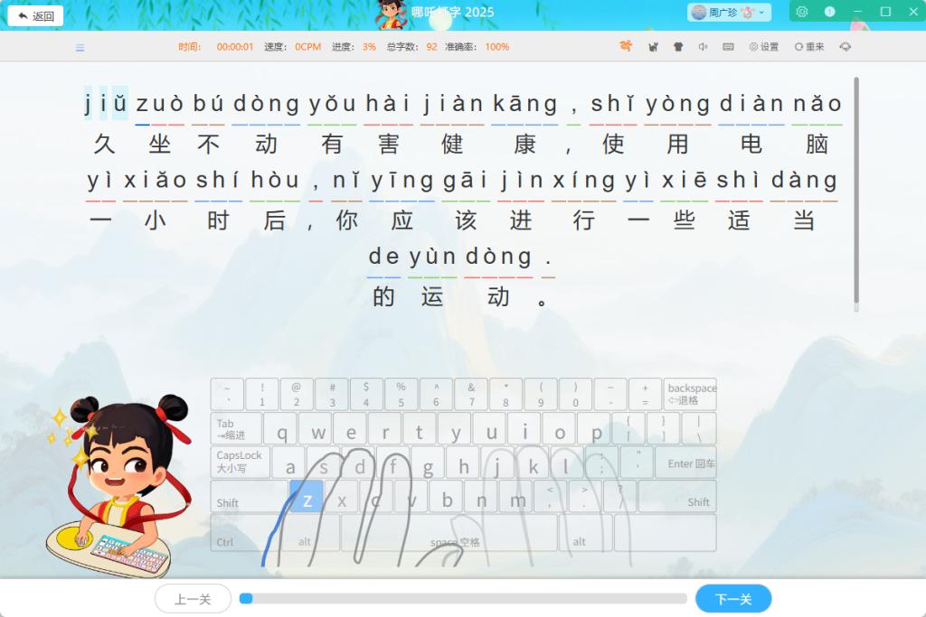它的课程设计带着点 “洋范儿”,把拼音练习和中文学习结合得挺巧。比如练 “ang” 这个韵母时,不光让孩子打 “方、长、上”,还会配一张天安门的图片,说 “天安门的‘安’也有‘ang’哦”,让孩子在打字时顺便记点文化知识。我有个学生爸妈是外教,就用这个软件,孩子不光打字快了,还认识了不少中国地名、菜名,挺意外的收获。