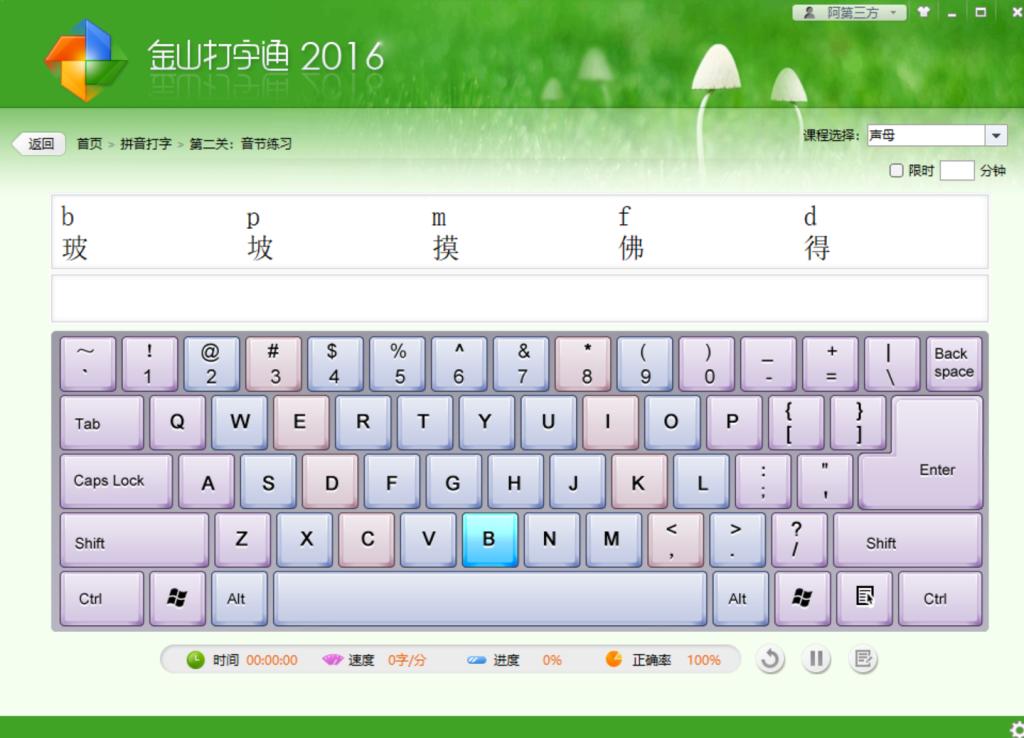 再说说金山打字通,这可是老牌子了,我刚当老师那会儿,学校机房里装的全是它。论底子,它是真扎实,拼音训练从声母、韵母单个练起,比如 “b、p、m、f”,每个字母都配着标准读音,还有 “爸、怕、妈、发” 这些例字,适合刚学拼音的低年级孩子打基础。