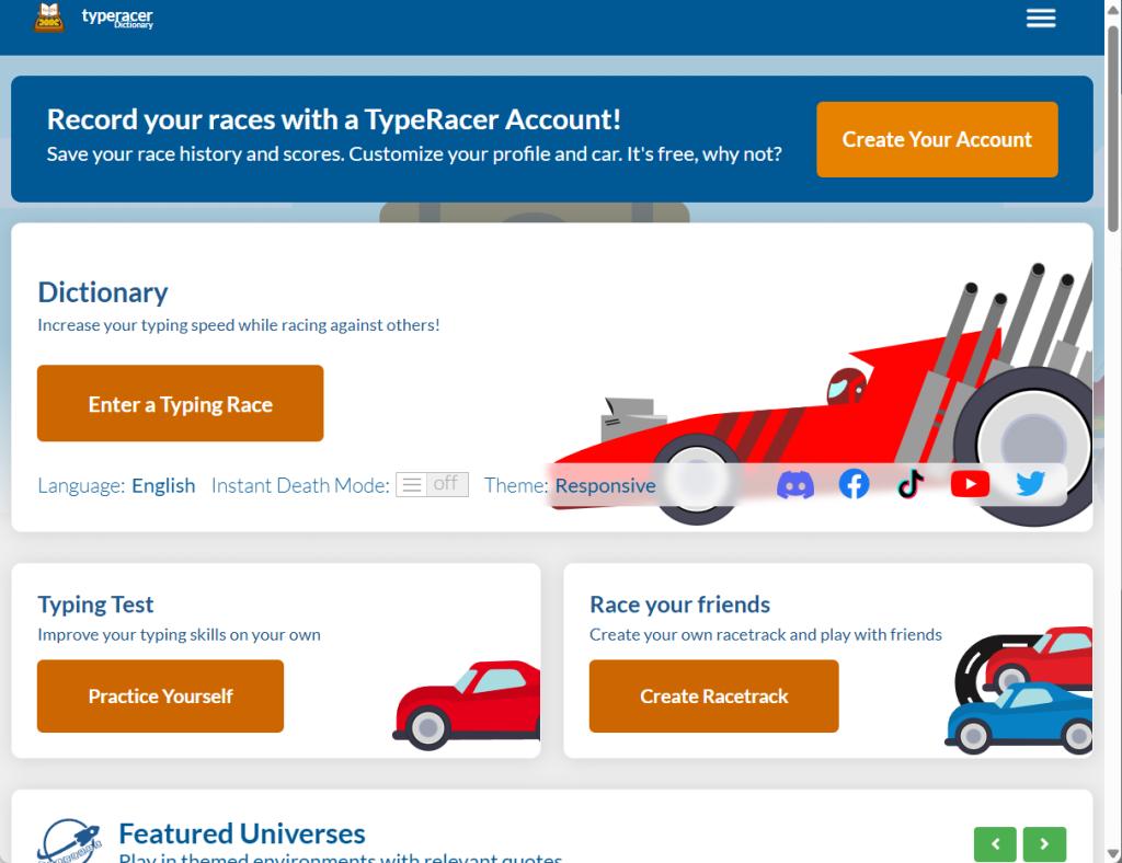 TypeRacer,这简直就是打字界的F1赛车,刺激得很!你能跟一堆陌生人同时在屏幕上打字,看谁最先“跑完”。今年它又推出了个语音转文字竞速模式,你连打字都不用,直接开口说,系统就能把你说的话转成文字,算入成绩。这样一来,等公交、坐地铁的时候,你都能随时随地玩一把。