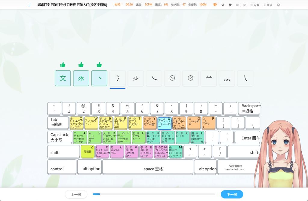 说实话,现在市面上专门给学生练五笔的工具真不多。很多软件要么太老,要么就是照搬国外那一套。所以我们做**哪吒打字**的时候,就把五笔课程也给加上了。它支持王码五笔86版、98版和新世纪版,课程从字根视频讲起,一步步到一级简码、二级简码、拆字练习,总共350多个关卡,像打游戏闯关一样,孩子们练起来不觉得累。