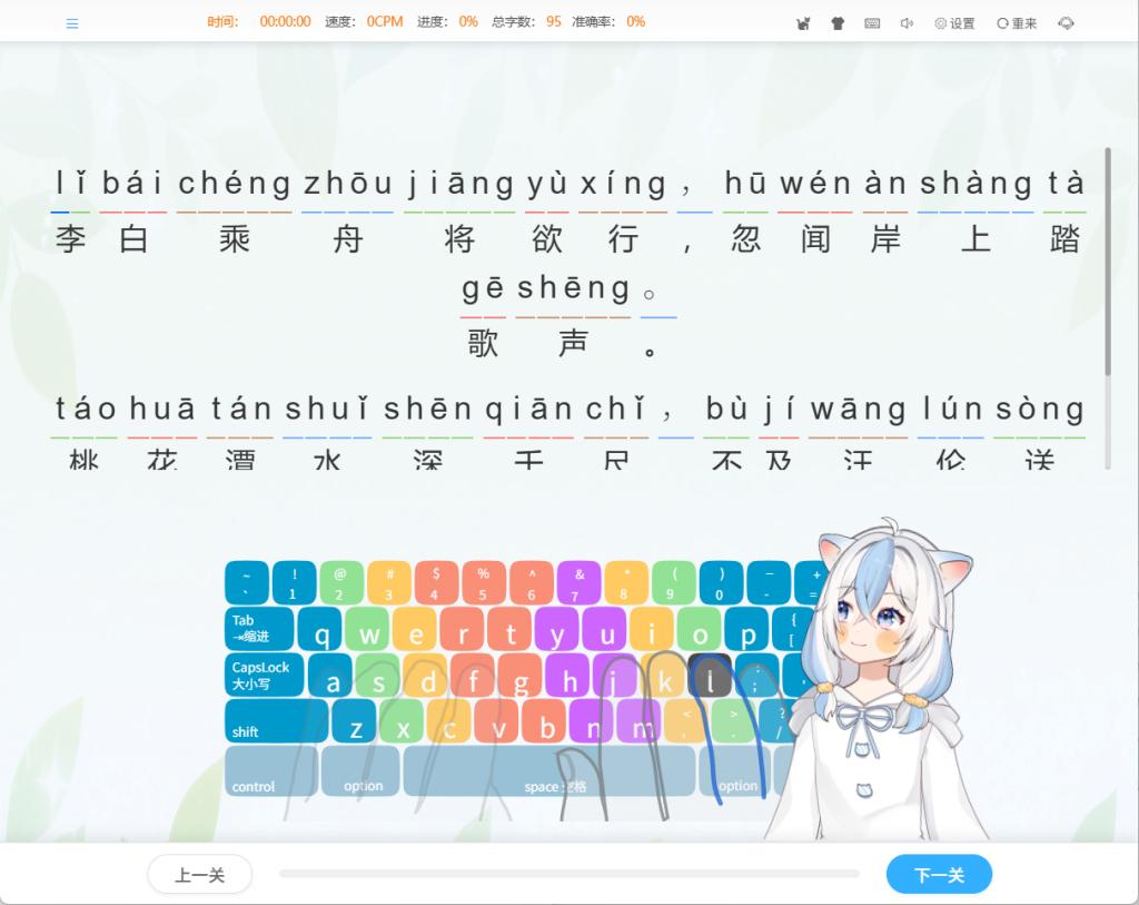 有个“字母气球”关卡,打对一个字母才能戳破一个气球,玩一圈下来,键位就认得七七八八了。特别适合一二年级启蒙,练到每分钟20字符就够了。