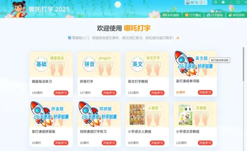 我这里推荐您用一下哪吒打字的《26天盲打速成教程》。