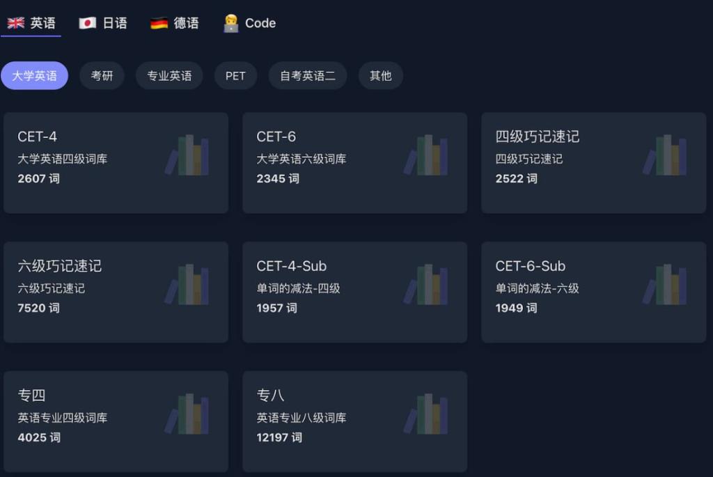 把 “记单词” 和 “练打字” 绑在一起,挺适合想一箭双雕的学生。内置四六级、考研词库,还有程序员专用的 “代码词库”(比如 JavaScript 命令、Linux 指令),打单词的时候能看到释义和发音,练完打字,单词也记牢了。