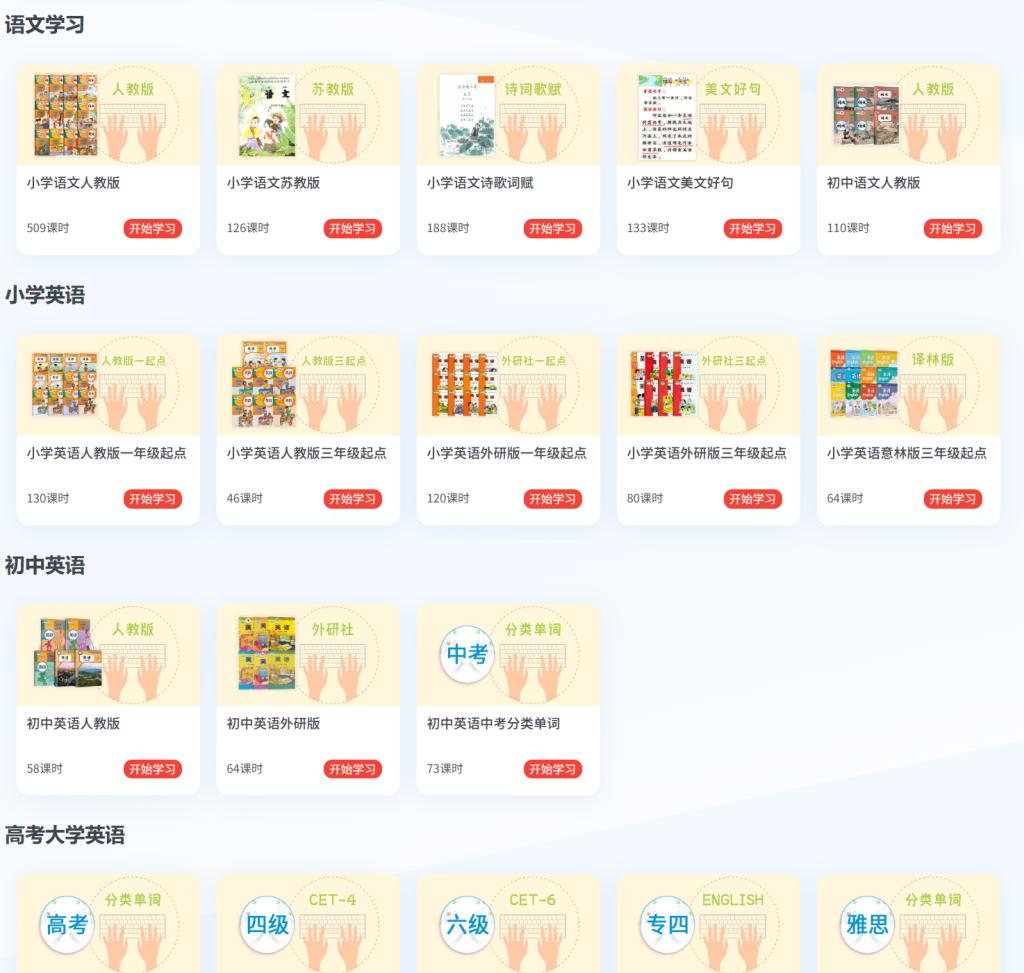 点开课程,苏教版的生字表、外研版的单词卡直接能练。三年级课文里的 “孔雀”“打扮”,四年级英语的 “family”“friend”,打熟了不光打字快,课本知识也记牢了。我班上有个孩子,以前总写错 “紫” 字,用它练了一周 “紫色”“紫菜”,不光打字顺了,生字也再没错过,连语文老师都来问我要软件名。