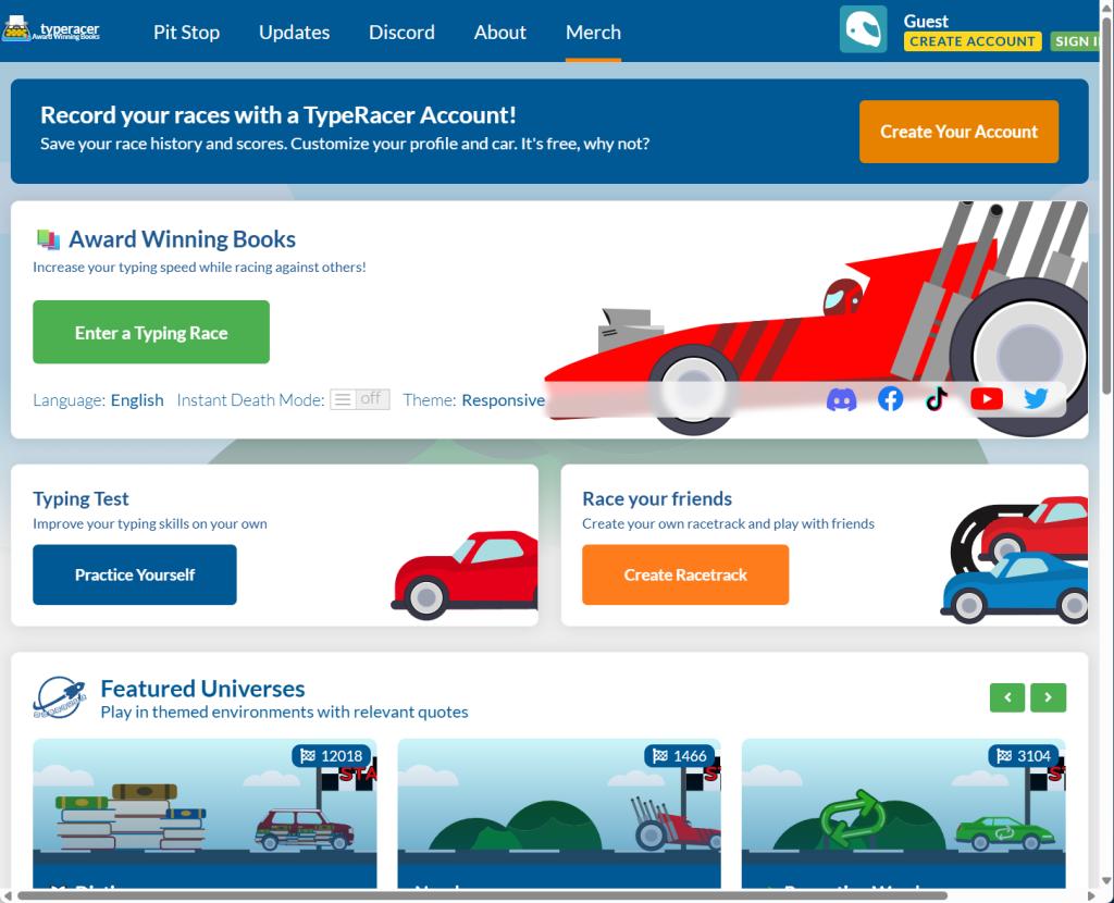 4. TypeRacer:打字比赛发烧友的快乐星球