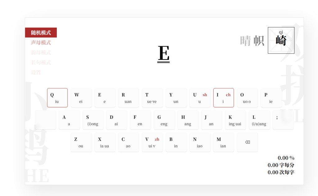 Monkeytype,走的是极简路线,屏幕上除了要打的字和虚拟键盘,啥都没有。你可以自己选内容——英文单词、中文短句、甚至整段文章,还能调难度和时间。