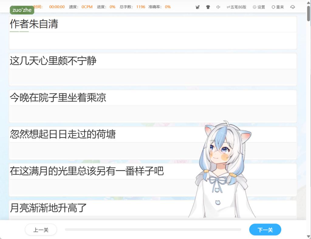 除了课文,还有 100 篇优美散文,500 字的短文像《春》的片段,读着轻快,打起来也顺;1000 字的如《荷塘月色》节选,边打边感受文字里的意境,一点不觉得枯燥。更别说唐诗三百首、宋词三百首全收录,从 “床前明月光” 这种浅显的五言,到 “大江东去” 这种豪迈的词篇,篇幅从几百字到上千字不等,文学爱好者练打字时,等于顺带品了诗词,多划算!