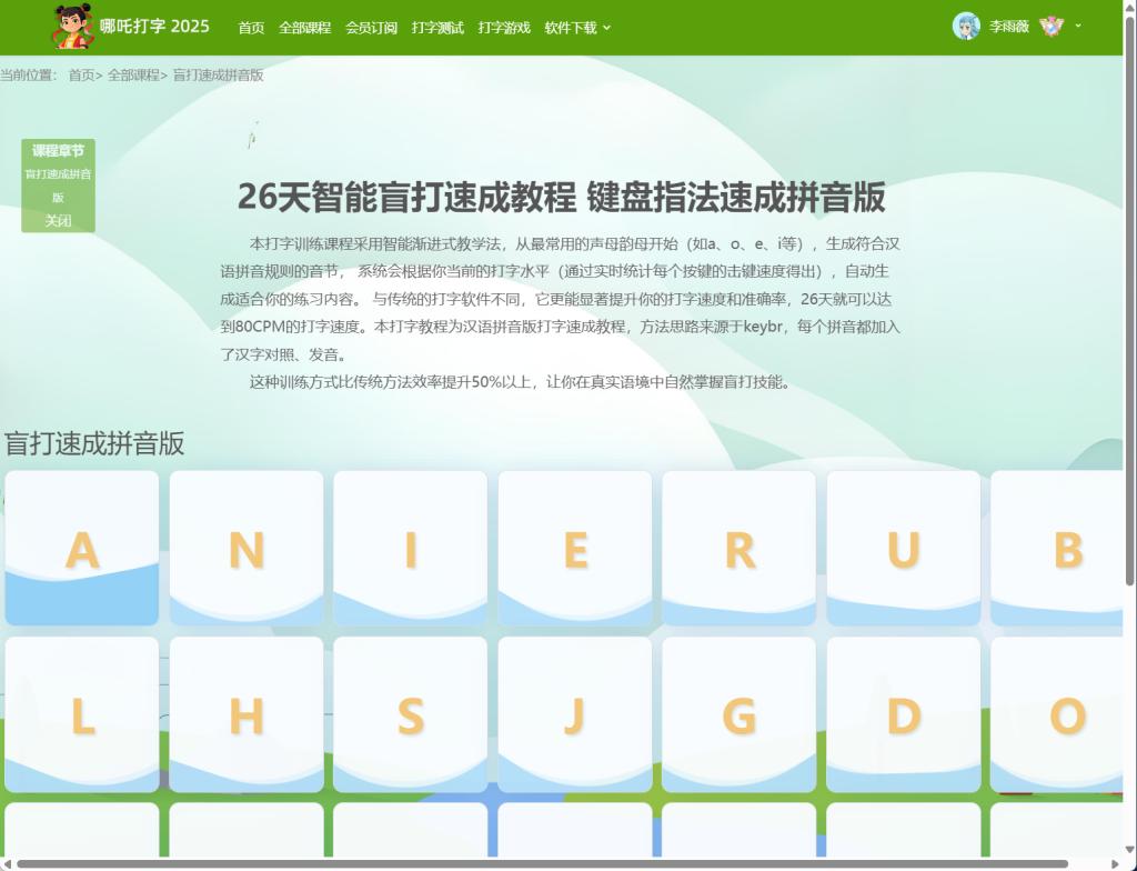 要是给小学生或者刚接触键盘的孩子选练习工具,哪吒打字绝对能让人眼前一亮。它把枯燥的键位练习,变成了好玩的闯关游戏。屏幕上的小哪吒、熊猫头会随着打字的对错做出不同表情:打对了,它们就欢蹦乱跳、欢呼雀跃;打错了,就耷拉着脑袋,看着怪可怜的。孩子们练着练着,就一门心思想着怎么哄好这些小家伙,不知不觉就入了迷。而且,它还把拼音、课本里的生词融入到练习当中,教孩子左手小指负责按 A 键,右手食指负责按 J 键,就跟老师在旁边手把手教一样。零基础的孩子用不了多久,就能找到手指在键盘上 “回家” 的感觉,轻松掌握正确指法。