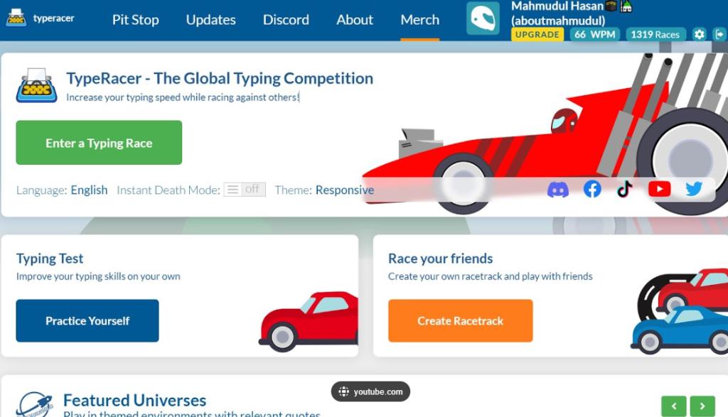TypeRacer把打字变成比赛了,能跟全球的人实时比,挺能激发好胜心的,文本类型也多。不过主要是练英文的,而且有时候为了快,容易养成不好的指法习惯,适合喜欢竞争的英文用户。