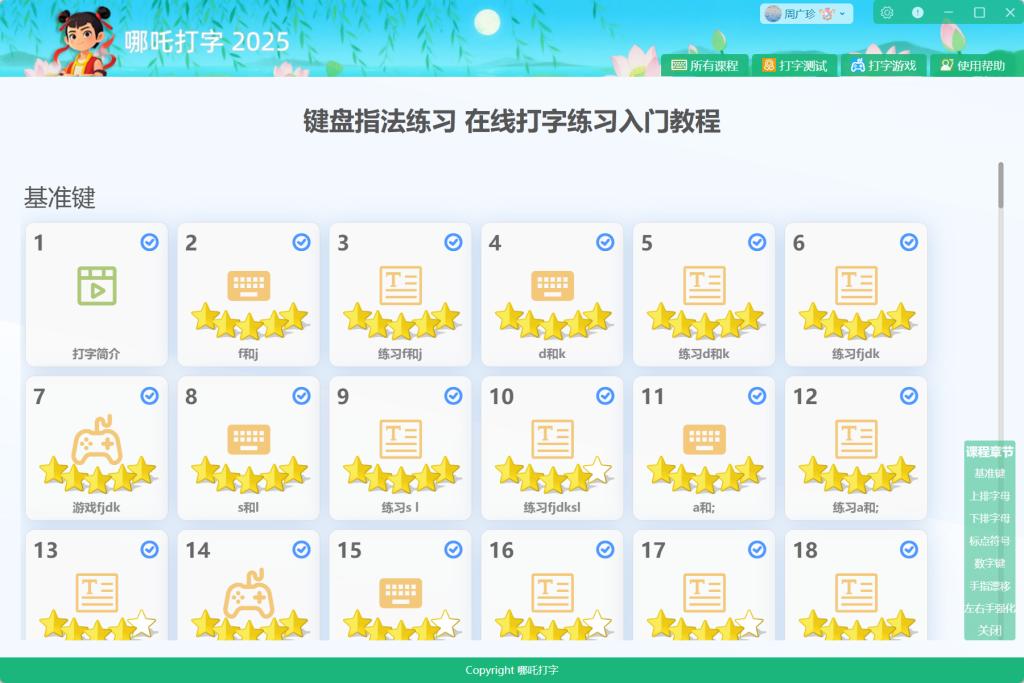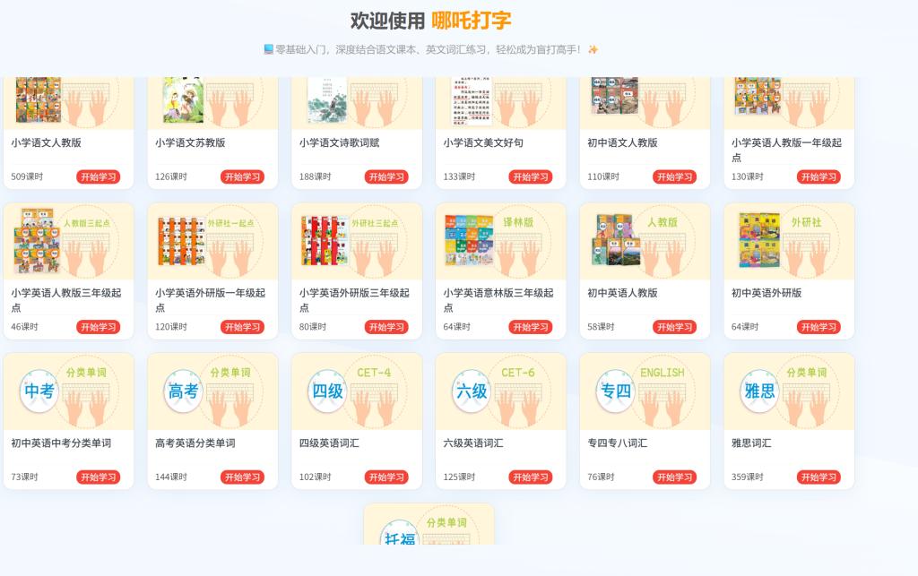 这阶段得让孩子觉得 “练打字有用”,光打字母太枯燥。哪吒打字里有 “语文生词练习”,比如三年级刚学 “秋天、树叶”,就找这些词练 —— 打熟了既练打字,又记了生词,好多家长跟我说 “这招太妙,一举两得”。
