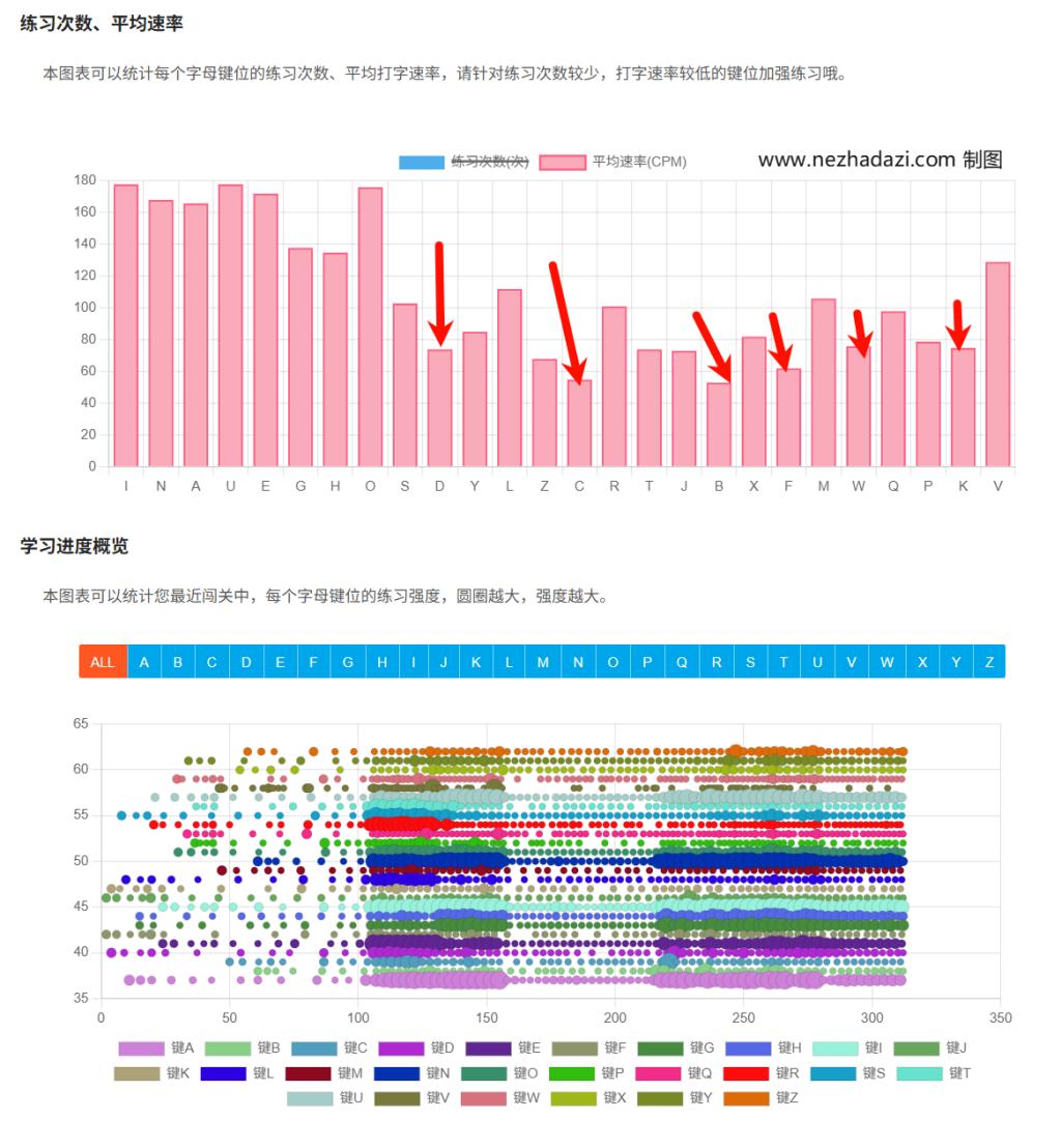 手指熟了就该提速了,但不能瞎练 —— 得知道哪块弱。打开哪吒打字的 “键位统计”,跟看体检报告似的:标红的键就是 “拖油瓶”(好多孩子 “Q、Z、P” 这三个键慢),标蓝的是强项。